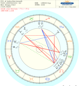 火星はアスリートの表示体で乙女座の月、火星がコンジャンクションしているので彼がアスリートであることを表していますね。